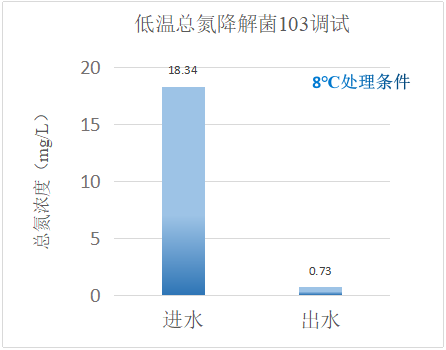 通过技术人员现场投加低温总氮降解菌103,再配合现场生化系统运行条件控制、优化,达到如下效果: